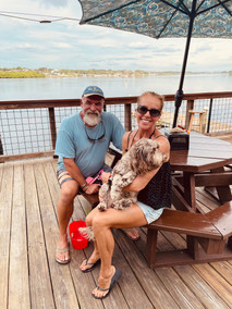 We woke early on Friday, headed to the beach for the morning and took the dinghy up to Rivers Edge for lunch. This little waterside biker bar has become a favorite for us. Even though most of their food is fried, their french fries are the best we’ve ever had. Wash that down with a beer or a Chardonnay and its just perfect in the sun. While working on my laptop alone (Shaun was out on the dinghy) We did some some work in the afternoon, cooked supper together and ate up on the helm.